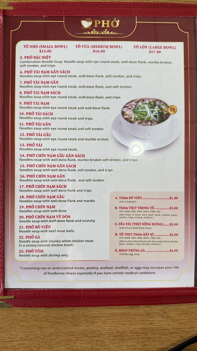 “ The food here is incredibly authentic just like the food in Vietnam. My family especially loves the Pho, Bun Bo Hue and Bo Luc Lac. The portions are big and are quite affordable compared to the competition averaging about 10$-20$ per meal. However, my spoon was dirtier than I would expect at a restaurant. ”